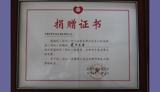 2015年,上海紅箭自動化設備有限公司為上海市慈善基金會捐款
